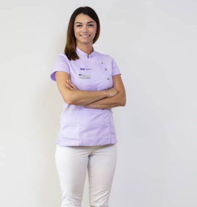 Dyplomowana higienistka i asystentka stomatologiczna. Wiedzę niezbędną do pracy na tym stanowisku czerpie z licznych szkoleń oraz kursów doskonalących. Jej pasją jest asystowanie przy leczeniu protetycznym. Jest osobą pogodną, życzliwą oraz dobrze zorganizowaną. Dba o to, aby Pacjent podczas wizyty czuł się bezpiecznie i komfortowo. Czas wolny lubi spędzać aktywnie z rodziną.